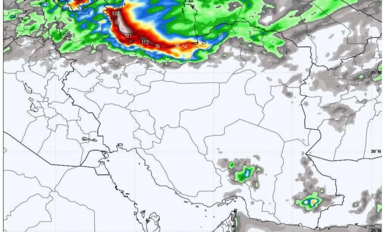 اوج این بارندگی‌ها در استان گیلان پیش‌بینی شده و انتظار می‌رود تا ۱۱۲ میلی‌متر باران در مدت دو هفته، این استان را تحت تأثیر قرار دهد.