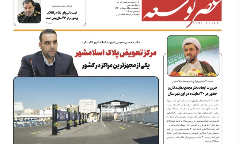 نسخه الکترونیک نشریه ی عصر توسعه ویژه ی اسلامشهر / شماره ۱، بهمن ماه ۱۴۰۳
