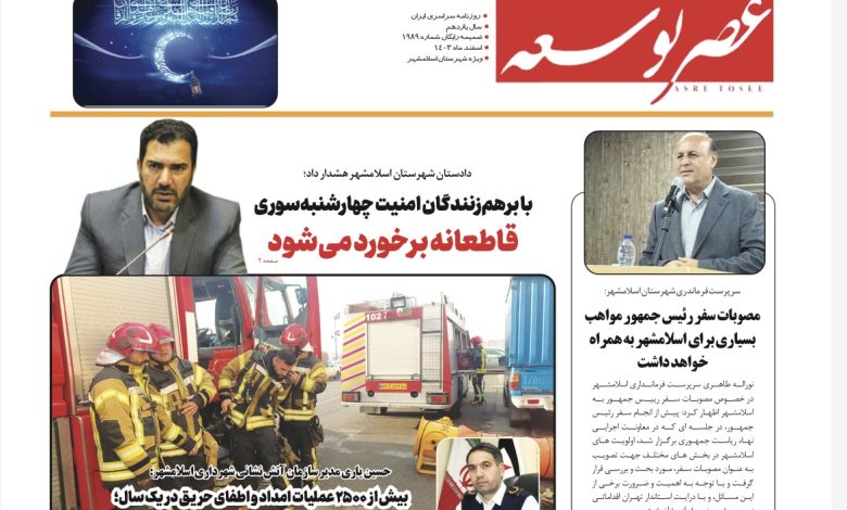 نسخه الکترونیک نشریه ی عصر توسعه ویژه ی اسلامشهر / شماره ۲، اسفند ماه ۱۴۰۳