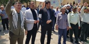 پس از اقامه نماز، نمازگزاران با برگزاری تجمعی اعتراضی، با حضورمسؤولان از جمله سیدرضا حسینی شهردار، اصغر باقری بخشدار، اعضای شورای اسلامی شهر، سرهنگ یارقلی فرمانده ناحیه مقاومت بسیج و جمعی از مدیران شهری، جنایات اخیر رژیم صهیونیستی علیه مردم مظلوم فلسطین را به شدت محکوم کردند. این تجمع با شعارهایی چون «مرگ بر اسرائیل»، «فلسطین پیروز است» و «سکوت هر مسلمان خیانت است» برگزار شد.