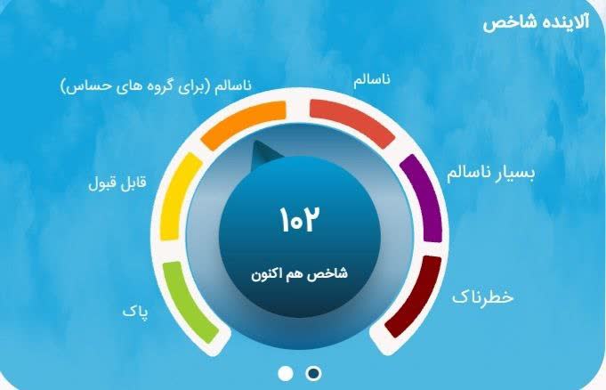 شرکت کنترل کیفیت هوای تهران اعلام کرد: در حال حاضر کیفیت هوای تهران با شاخص ۱۰۲ در وضعیت نارنجی و آلوده برای گروههای حساس قرار دارد.